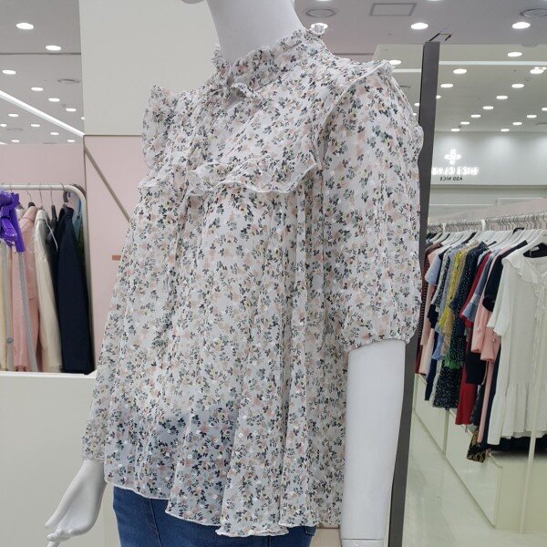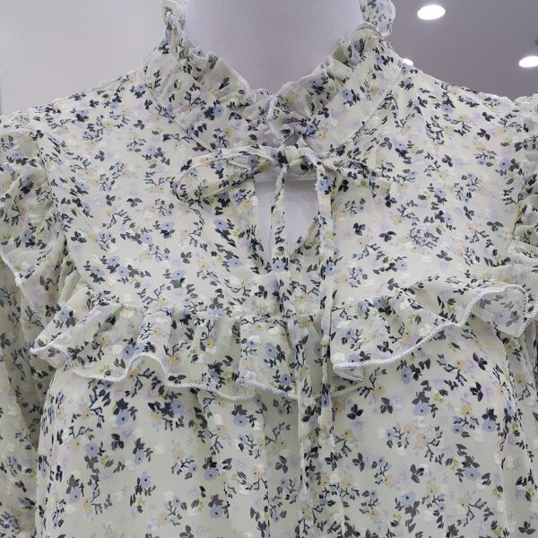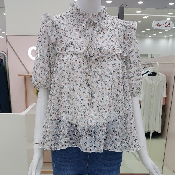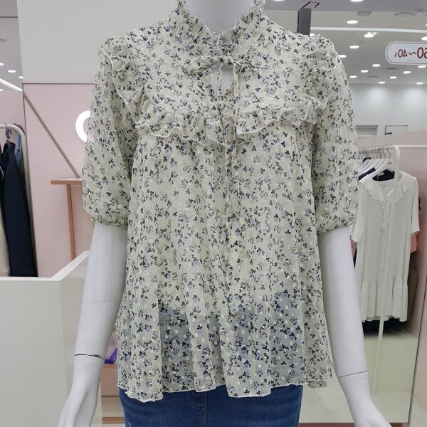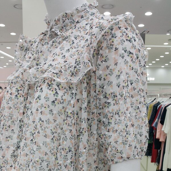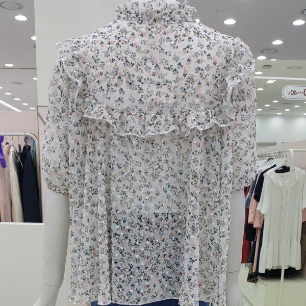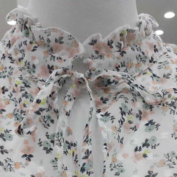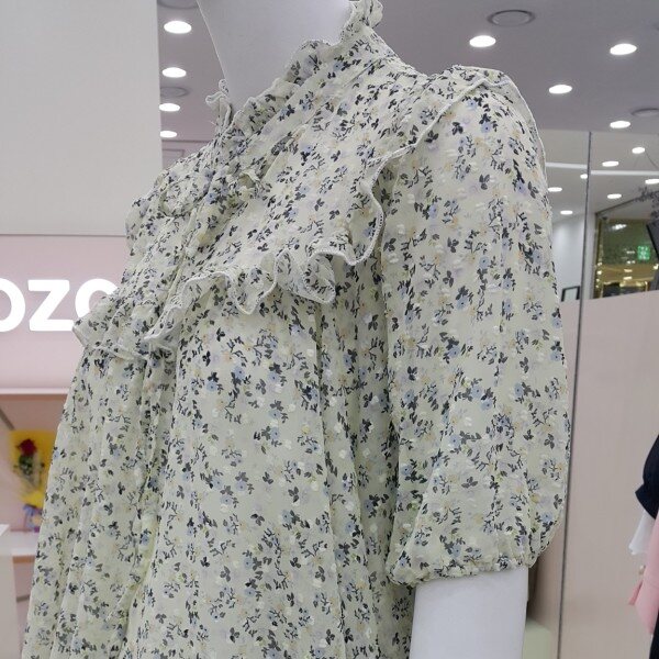 화사한 꽃프린트의하늘하늘 하고프릴과 리본으로 화사하고 발랄하게 입는사람의 사이즈에 따라 다양하게 표현될 아이예요~