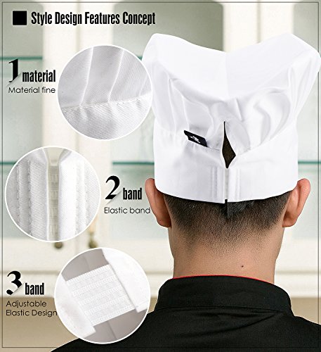 FULiYEAR Chef Hat Adjustable Elastic Kitchen Cooking Working Chef Cap Sets for Adult Womens Mens