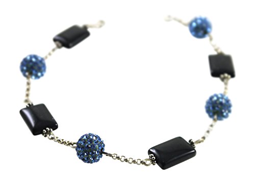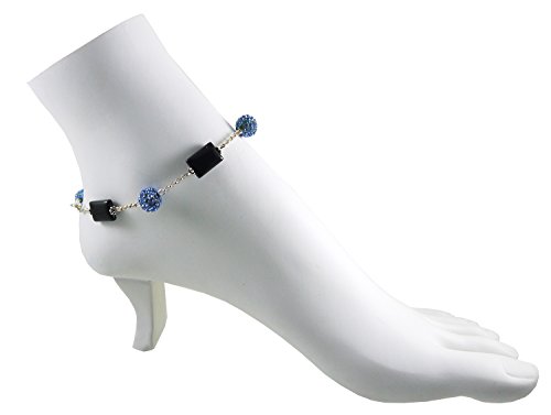 -. Title : Obsidian Ankle Bracelet with Sparkling Rhinestone Disco Beads, Blue - 9 3/4"