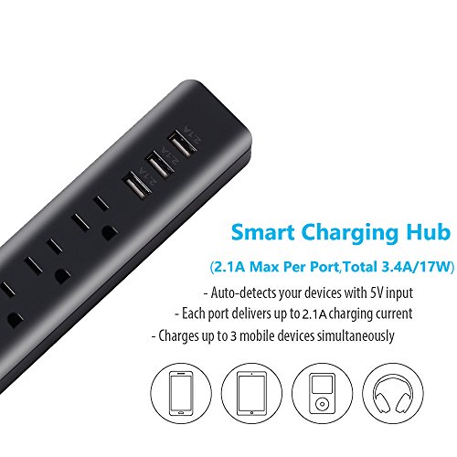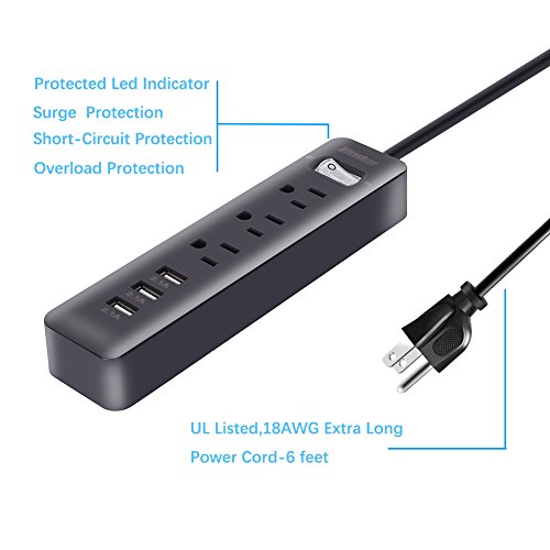 - 3-Outlet power strip surge protector with 6ft UL listed extension cord, Prefect for travel/home/professional workstations,power supplies to office electrical appliances, computers, laptops, printers, modems, speakers and more,the cord allows you to keep the power strip in an unobtrusive location while making sure it reaches your devices