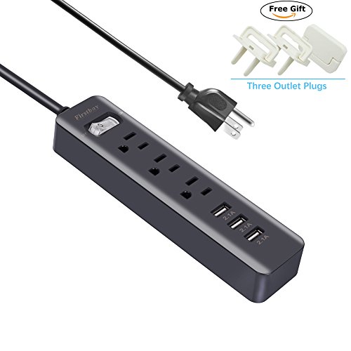 Firstbuy Mini USB Power Strip/PowerPort strip Surge Protector with 3 Worldwide Voltage Outlets 3-Port Smart USB Charging Station 6 Feet UL listed Cord 1250W/10A for iphone/Tablets/Travel/Office/Home
