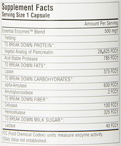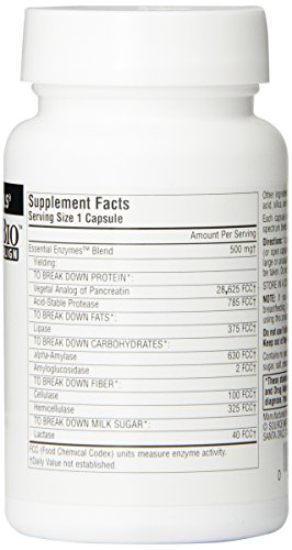 -. Title : Source Naturals Essential Enzymes 500mg, Full spectrum digestion with 8 active enzymes, 60 Capsules