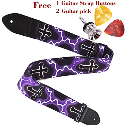 Guitar Strap for Acoustic Classical and Electric Guitar,Gift 1pc Guitar Strap Buttons 2pc Guitar Picks,Polyester cotton Guitar Straps (Cross Lightning Style)