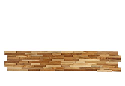 Bare Decor EZ-Wall 3D Mosaic Tile in Solid Teak Wood, Set of 10 Natural Finish Tiles