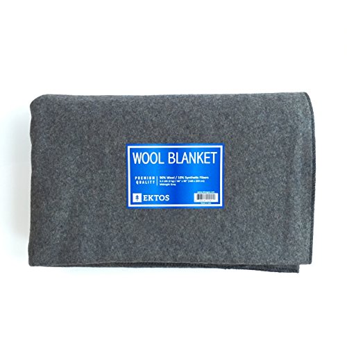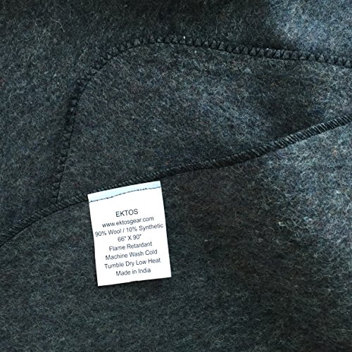 EKTOS 90% Wool Blanket, Grey, Warm & Heavy 4.4 lbs, Large Washable 66"x90" Size, Perfect for Outdoor Camping, Survival & Emergency Preparedness Use