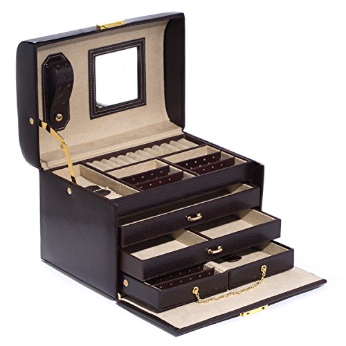 -. Title : Time Factory AJ-BB529BRW 4 Level Hinged Leather Jewelry Box