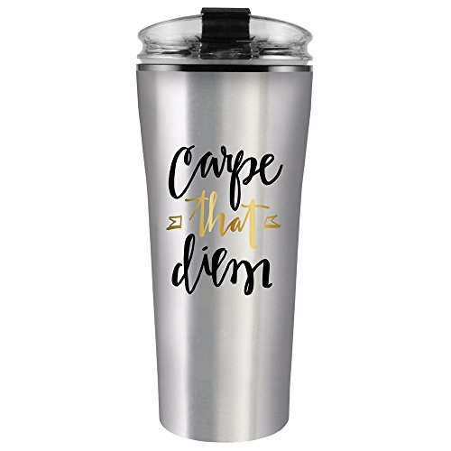 Slant Collection 16oz Carpe Diem Silver Stainless Steel Travel Mug Slider Lid