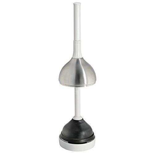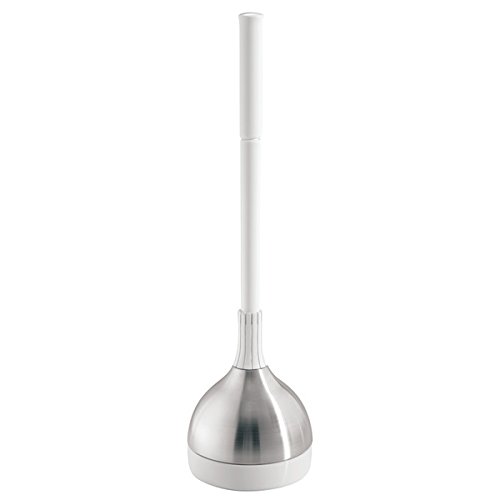 Plunger with holder easily tucks into the corner and conceals unsightly bathroom tool in a contemporary metallic housing; Bowl brush with holder features a stiff-bristle brush that cleans under the bowl rim and in hard-to-reach places