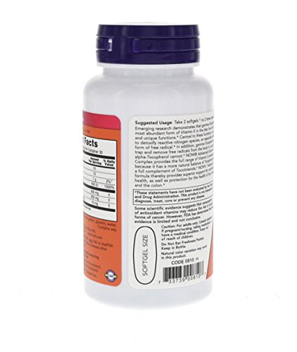 ReleaseDate : 2008-02-08 Studio : NOW Foods Publisher : NOW Foods Binding : Health and Beauty Product Description Emerging research demonstrates that gamma-tocopherol, the most abundant form of vitamin E in the diet, has very important and unique functions. Central to these functions is its capacity to detoxify reactive nitrogen species, an especially destructive form of free radical. In addition, gamma-tocopherol acts to trap and remove free radicals from the body. NOW Advanced Gamma E Complex provides the necessary full range of antioxidant protection because it contains a more natural balance of tocopherols plus a full complement of tocotrienols. NOW advanced formula thereby provides superior support for cardiovascular health, as well as protection for the health of the prostate and the colon. 0