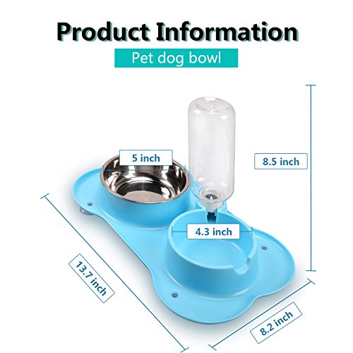 -. Feature : The Dog Cat Feeding Bowls Set come up with a food grade silicone tray, a 13 cm/5"stainless steel bowl, a water bottle. / The Automatic Water Dispenser Feeder is made of nontoxic food grade silicone, ensures water quality, makes drinking easier, continuous & more convenient. Especially when you are not with your pets, just make the water bottle filled, the water can drops automatically, make sure continuously water supply for your lovely pets, also you can remove the bottle easily if you do not need it. / The Double Dog Bowls Set ensures eating&drinking together, smart and useful, the stainless steel bowls are with premium quality, easy to use, wash and clean, dishwasher safe / Vacuum Non-skid Suction Cups Design,prevent the feeder from sliding and moving around, pet longer drag bowls all around and tip them over, keep the feeding place more clean instead of in a terrible mess, also the tray designed with a lip to help keep water and food from escaping the mat. / Smart&Bright, suit for small to medium sized dogs, cats, kittens and other small pets, making feeding easier, more convenient and more clean, fun&safe for your lovely pets