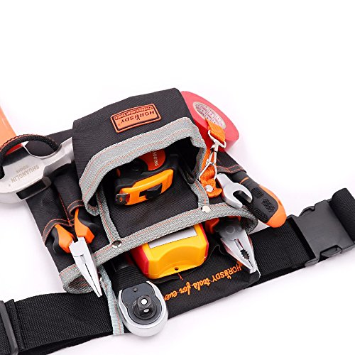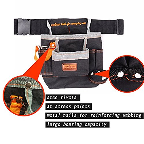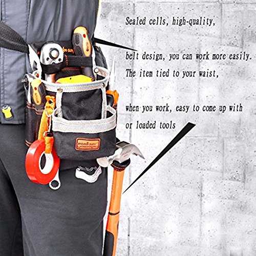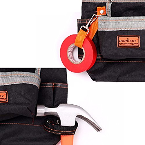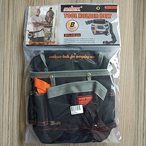- 2.Strong polyester hammer hook,3 small pockets for the screwdrivers,pencils etc,Wide waist belt tool bag.