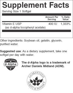 -. Binding : Health and Beauty -. Feature : Swanson Premium / Swanson Natural Vitamin E 400 Iu 100 Sgels / Per GMP guidelines set forth by the FDA, most products are formulated for 24 months from the date of manufacture. Liquids and probiotics are formulated for 12 months. -. Label : Swanson Premium -. Manufacturer : Swanson Premium -. PackageQuantity : 1 -. ProductGroup : Health and Beauty -. ProductTypeName : HEALTH_PERSONAL_CARE -. Publisher : Swanson Premium -. Studio : Swanson Premium -. Title : Swanson Natural Vitamin E 400 Iu 100 Sgels