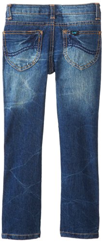 Classic lee straight jean with super soft denim and rhinestone buttons, rivets and shanks.