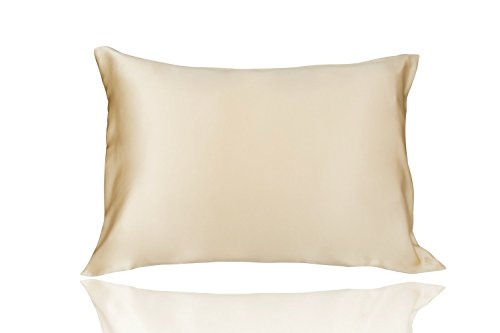 LULUSILK Mulberry Silk Pillowcase for Hair and Skin King Size Gold Pillow Cover for Wrinkle Zipper Closure 16 Momme 1pc