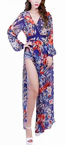 UGET Women's Bohemian Printed High Split Maxi Beach Dress Bikini Swimsuit Cover Up