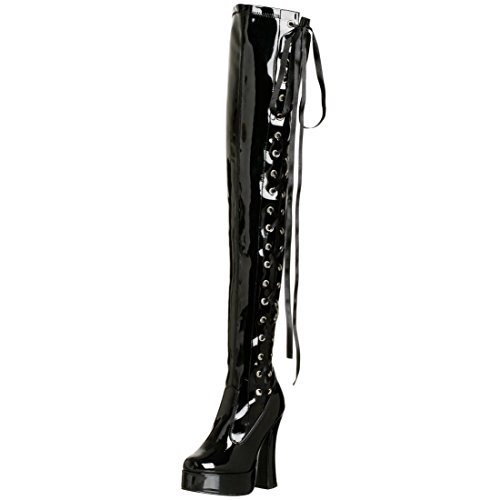 Womens 5 Inch Heels Sexy Thigh High Boots Platform Black Stretch Patent Lace Up