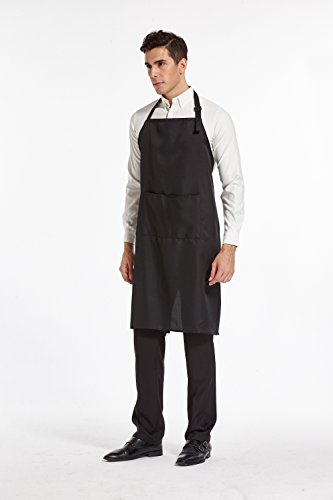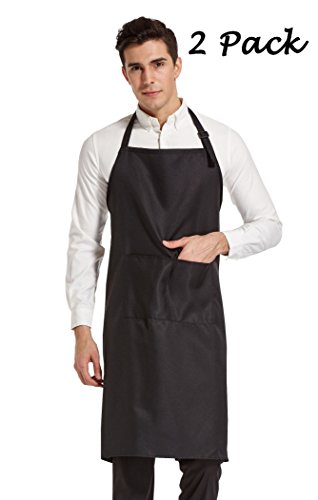 HOPESHINE 2-Pack Plus-size Aprons for Men with Pockets Water Resistant Adjustable Kitchen Aprons Dish Washing Grooming Chef Aprons (38 inch X 38 inch, Black X 2)
