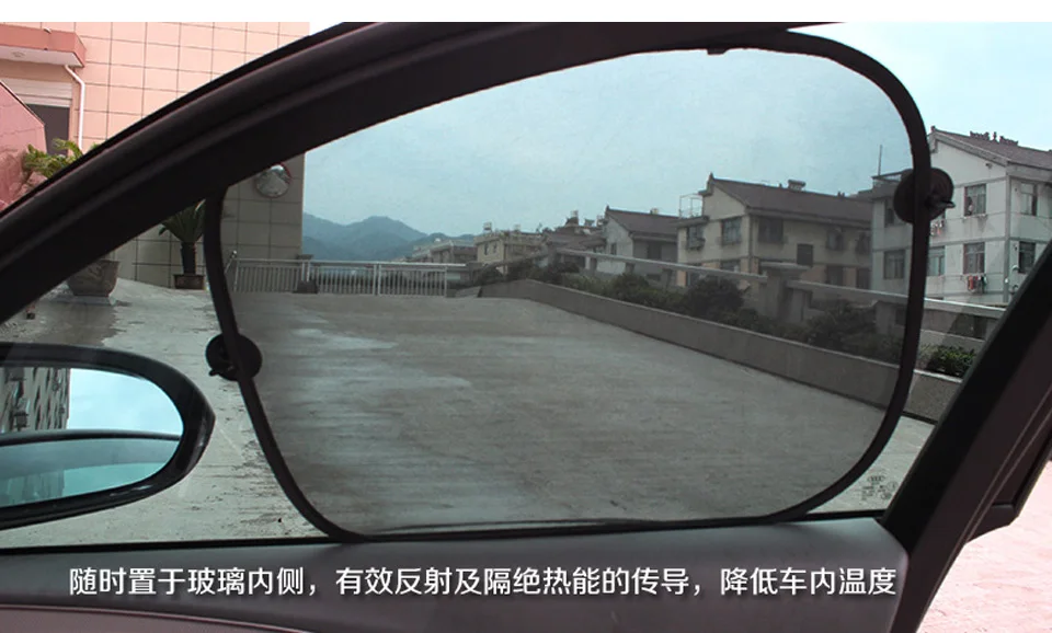 Side window of a car. 99% of the reflected sunlight rays. Can effectively reduce the interior temperature. With four suction cups, adsorbed on the car glass, use and remove are very convenient, front and rear glass universal.