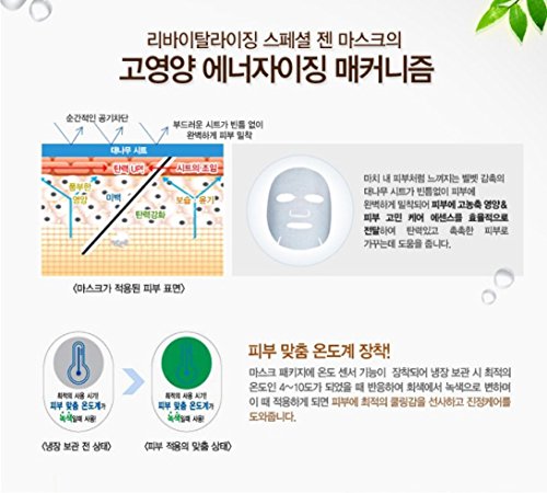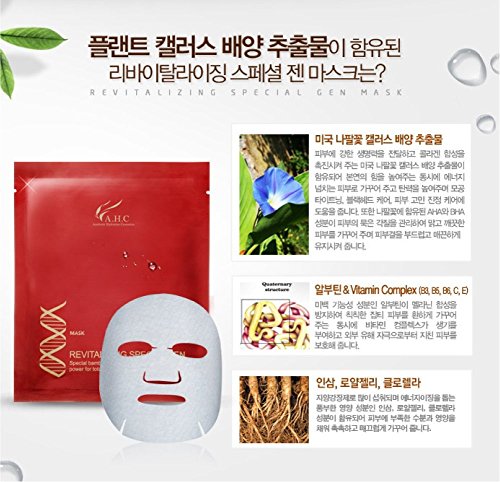 -. Feature : ◆ AHC Revitalizing Special Gen Mask 32g x 5 pcs / ◆ 100% Natural Bamboo Sheet with excellent adhesive power takes care of curvy areas boosts high water-retaining power for total nourishing and lifting care / ◆ Increases original power of damaged and broken skin to restore healthy rhythm and offer vitality to adjust skin texture. It also blocks melanin composition actively to minimize blemish marks and create white, illuminating and clear skin like pearl / ◆ Soft and rich essence permeates instantly and covers skin with moisturizing feeling to remain smooth and soft touch like silk. / ◆ Major Ingredients : : Arbutin, adenosine, royal jelly extract, ginseng extract, Japanese cypress water, persimmon leaf extract, mulberry root extract, bamboo water