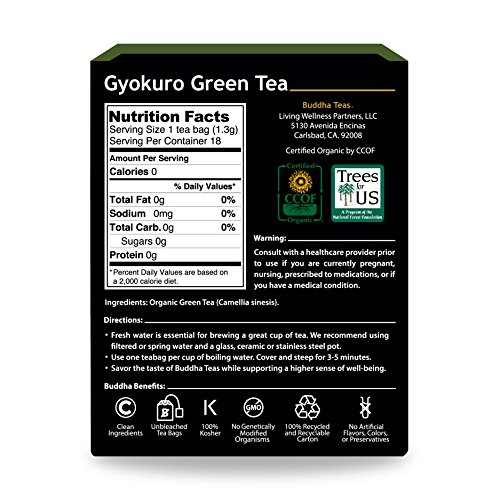 -. Title : Organic Japanese Gyokuro Green Tea - Kosher, Contains Caffeine, GMO-Free - 18 Bleach Free Tea Bags