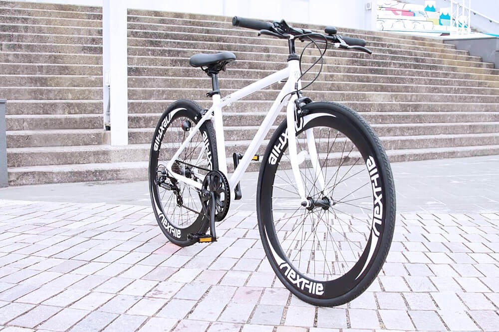 700cタイヤモデルです。軽量アルミフレームやシマノ製7段変速ギアを採用し、