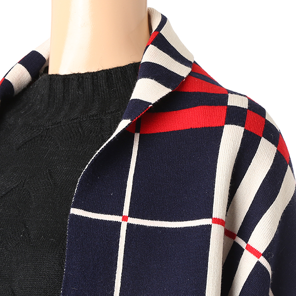 고급스런 체크패턴과 역동적인 컬러감이 시크한 숄 스타일 가디건입니다.