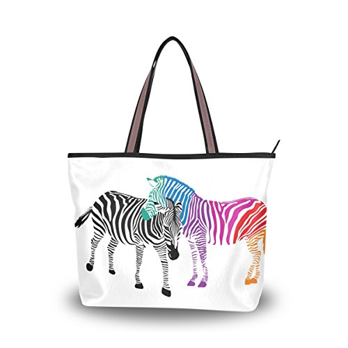 -. Title : JSTEL Women Large Tote Top Handle Shoulder Bags Zebra Couple Black And Colorful Patern Ladies Handbag