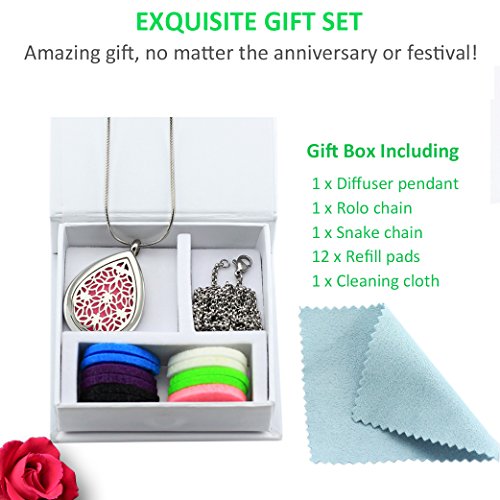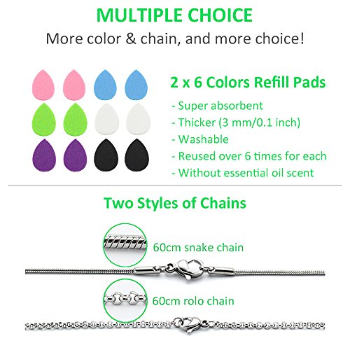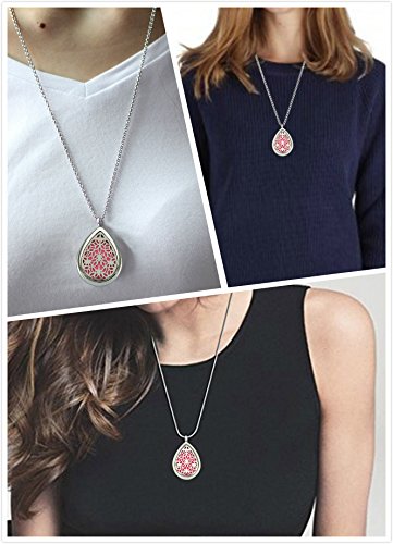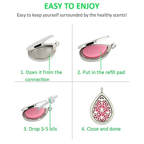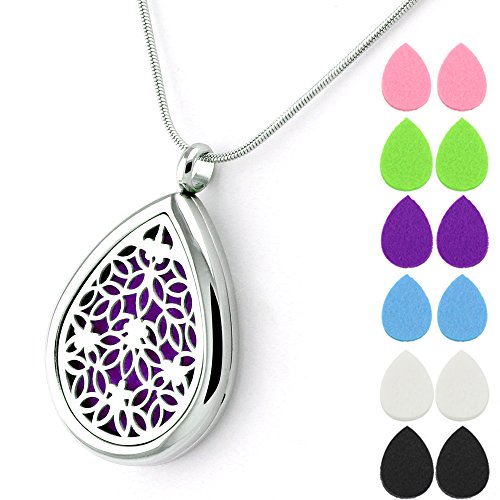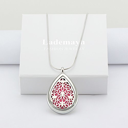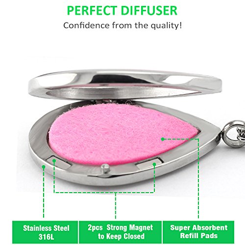 Teardrop Essential Oil Diffuser Necklace for Women, Stainless Steel Pendant Necklace Aromatherapy Jewelry(60cm chains, 12 felt pads)