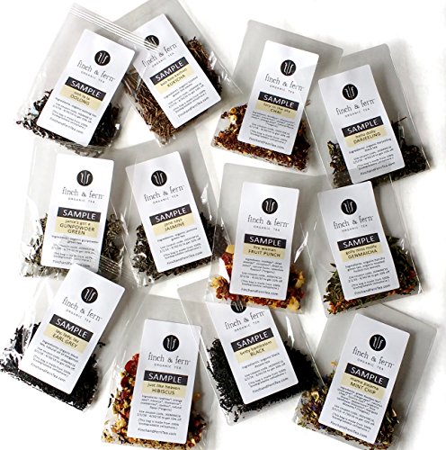 Want to try before you buy? No problem! We'll surprise you with samples of 12 different blends from our line of our organic teas. Each sample contains one tablespoon (= 3 tsp), which is enough for 1-2 cups of tea.Classic organic teas include Betty Bambalam Black, Hello Dolly Darjeeling, Jane Says Jasmine, Golly Miss Molly Genmaicha, Janie's Got a Gunpowder Green, Ooh La La Oolong, Lay Lady Lay Earl Grey, Koo Koo Kachoo Kukicha, Proud Mary Pu-erh, and Hazy Shade of Winter White.