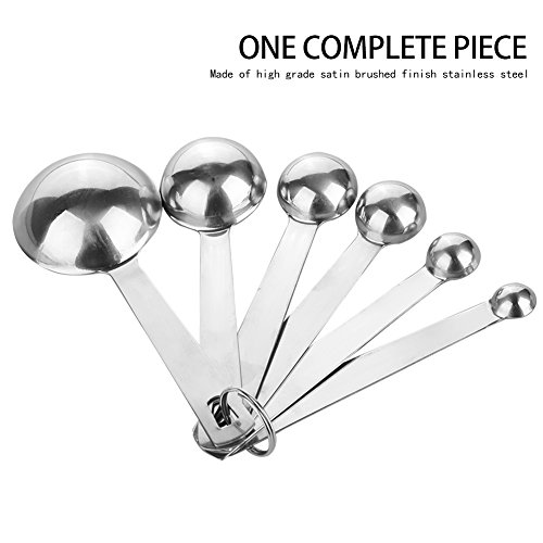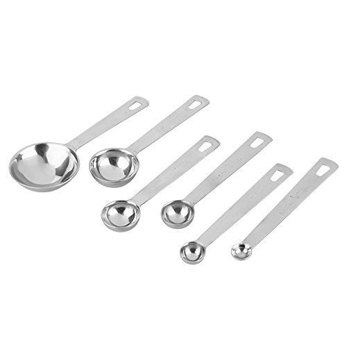PRECISE CAPACITY -- Ensures an accurate measure. Set of 6: 1/8-tsp (0.625ml), 1/4-tsp (1.25ml), 1/2-tsp (2.5ml), 1-tsp (5ml), 2-tsp (10ml), 4-tsp (20ml)