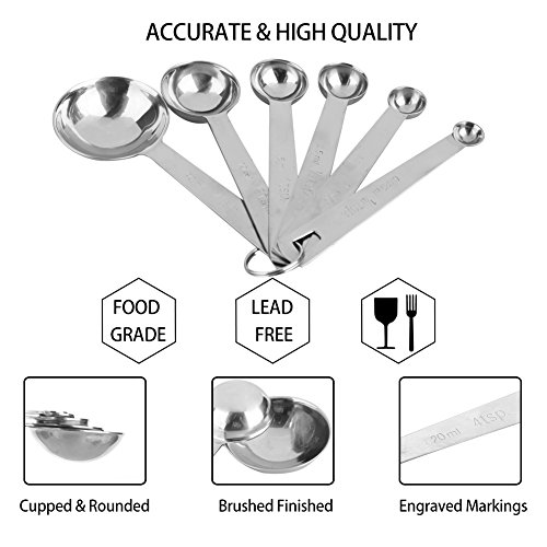 Topsky Stainless Steel Measuring Spoons for Accurately Measuring Dry and Liquid Ingredients with Precise Capacity - Set of 6