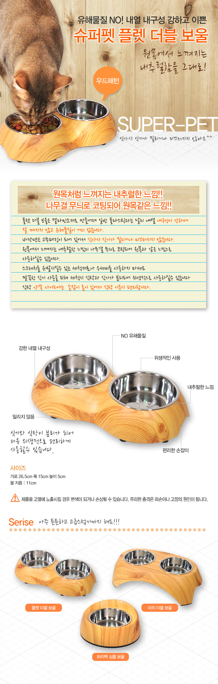 Double Bowl Wood Dog Cattle Rice Bowl Stainless Dog Flat