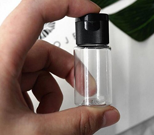 12Pcs 10ml/0.33oz Empty Plastic Sample Bottle Container Jar Pot Vial with Flip Lid Perfect for Emollient Water Shower Gel Emulsion Etc (Black Lid)