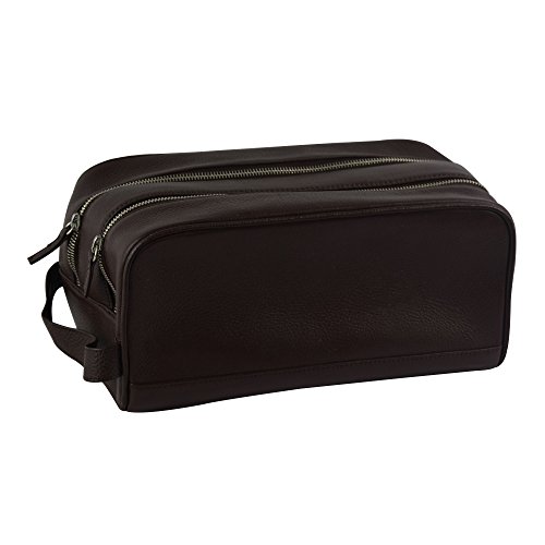 Genuine Leather Travel Toiletry Organizer with Handle and Zipper Closure, Brown