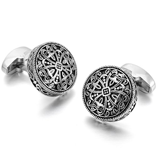 (MOWOM)/Accessories/Ties/DIRECT FROM USA/Silver Black 2 PCS Rhodium Plated Cufflinks Celtic Cross Shirt Wedding Business