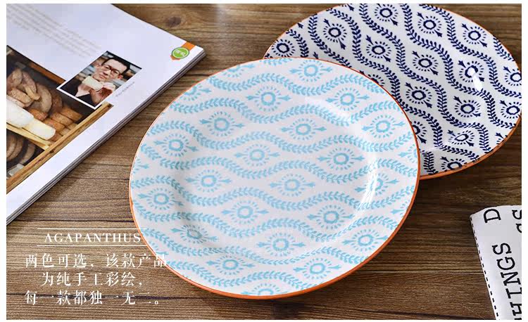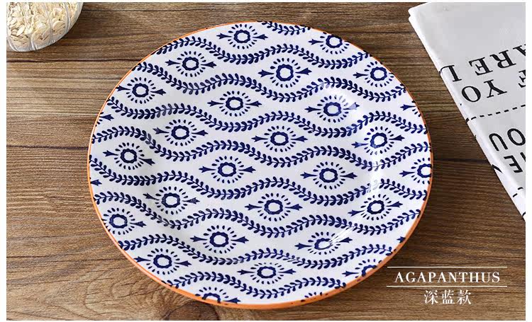 出口美国 8寸釉下彩小盘 家用菜盘蛋糕盘炒菜盘 下午茶点心果盘