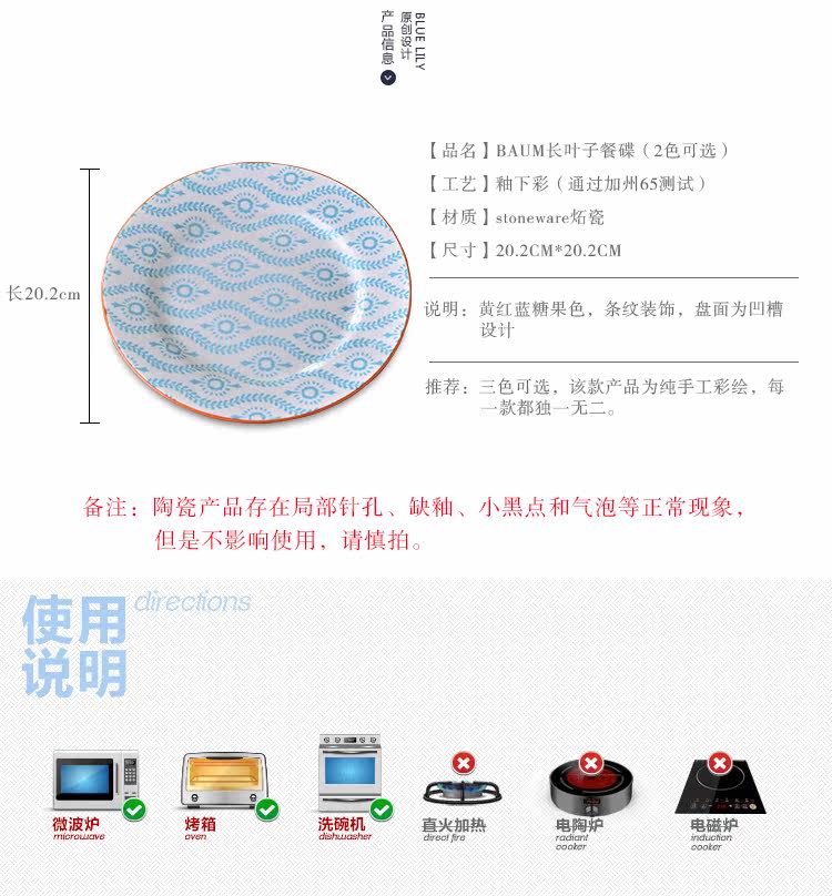 【推荐】:新款条纹餐盘,出口美国,盘底有LOGO,手绘工艺釉下彩,永不掉色,不仅让您的美食安全健康,更让您的餐桌秀色可餐,店主试用过这款盘装菜,很不错都大而且非常好清洗,真的一抹就好,喜欢的亲可以试试哦~