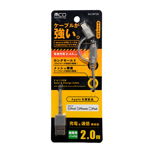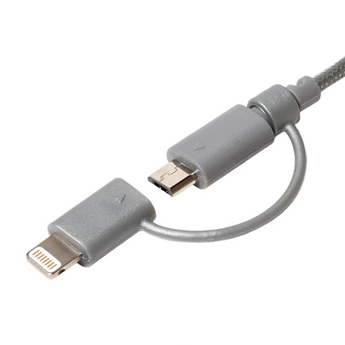 ●高耐久、高出力のmicroUSBケーブルに、Lightningコネクタアダプタが付属。
