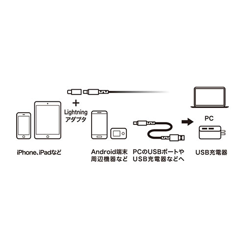 ●これ1本でUSB機器の充電、パソコンとのデータ通信など、幅広く使えます。