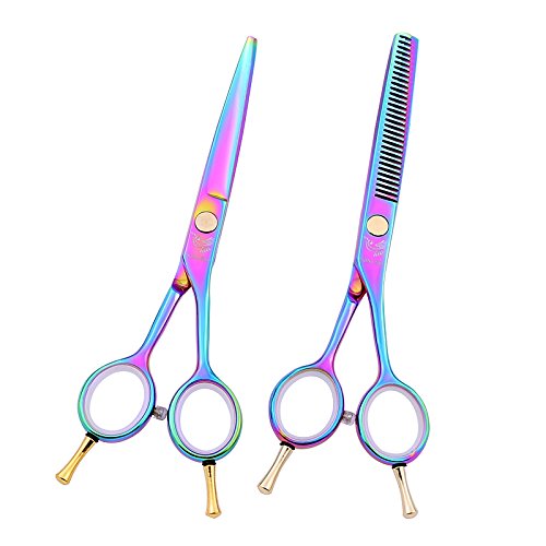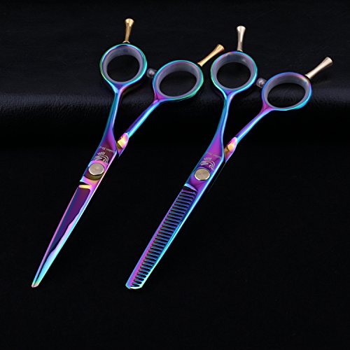 Golden Bird Professional Razor Edge Series - Barber Hair Cutting and Thinning Scissors/Shears Set - 5.5"- 440C Stainless Steel (Multicolor)