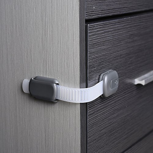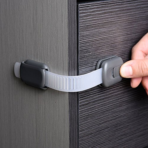 -. Feature : Sicherheitsschränke, Schränke, Schubladen, Mikrowelle, Kühlschrank, WC-Sitze, Fenster und Papierkorb / Einstellbar, flexibel, haltbar Gurte, die auf die flachen Oberflächen oder Ecken angewendet werden kann / Einfach zu installieren und entfernen; Beschädigen die Oberflächen nicht / Schubladen-Verriegelungsgröße: 19.5cm in der Länge und 3,5 cm in der Breite, die maximale verstellbare Länge ist 10.5cm / Paket enthaltet: 8er Packe von Babysicherheitsschlösser (Dunkelgrau)