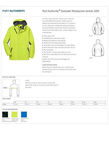 Studio : Port Authority Publisher : Port Authority Binding : Apparel Product Description Style #: J322 For those days when the rain just wont stop. Our Cascade Waterproof Jacket is fully seam-sealed with waterproof zippers. This parka-length essential has modern good looks thanks to its trend-right colors contrast zippers and colorblocking. 100% nylon shell 3000MM fabric waterproof rating Waterproof zippered chest pocket Waterproof front zippered pockets Hood with drawcord and toggles for adjustability Storm flap with snaps and hook and loop closure Two-way zipper Port Pocket for easy embroidery access Self-fabric adjustable tab cuffs with hook and loop closures Open hem with drawcord and toggles for adjustability 0