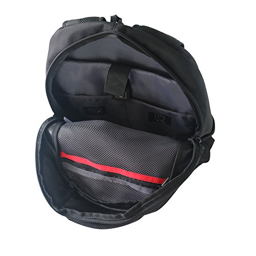 -. Feature : Durable Material: Made of heavy duty 1680D Polyester and SBS metal zippers for long lasting and red use. / Overall dimension: Approx. 13.6"L x 8.4"W x 18.4" H (34L x21W x46H cm) / PROTECTIVE: Buffer design leaves 1 inch space between laptop sleeve and bag bottom to prevent damage by a sudden drop. / HIGH-CAPACITY: One main pocket for up to 15 INCH laptop,power source and mouse.One front pocket for pens,cell phone and wallet.Two Elastic for bottle and umbrella. / USE: it can be use for school,hiking,business,travel,outdoor and daily use