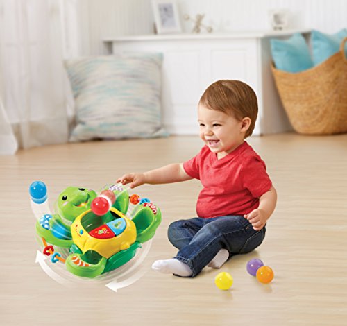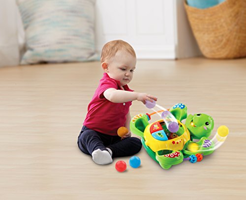 -. Binding : Toy -. Brand : VTech -. EAN : 3417765061004 -. Feature : Drop the balls into the turtle's tummy and he will respond by spinning and popping the balls out of his legs, demonstrating cause and effect relationships. / Playful voice engages toddlers with fun phrases and songs and encourages them to drop the balls into the tummy to keep playing. / Press the music button to hear cheerful songs and melodies. / With two modes of play, your baby can watch the balls pop out and back into the turtle's tummy or chase the balls when they pop out onto the floor while learning numbers, colors and parts of the body. -. Label : V Tech -. Manufacturer : V Tech -. Model : 80-506100 -. MPN : 80-506100 -. NumberOfItems : 1 -. PackageQuantity : 1 -. PartNumber : 80-506100 -. ProductGroup : Toy -. ProductTypeName : TOYS_AND_GAMES -. Publisher : V Tech -. Studio : V Tech -. Title : VTech Pop-a-Balls Twirl & Pop Turtle -. Warranty : No Warranty
