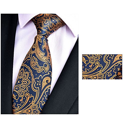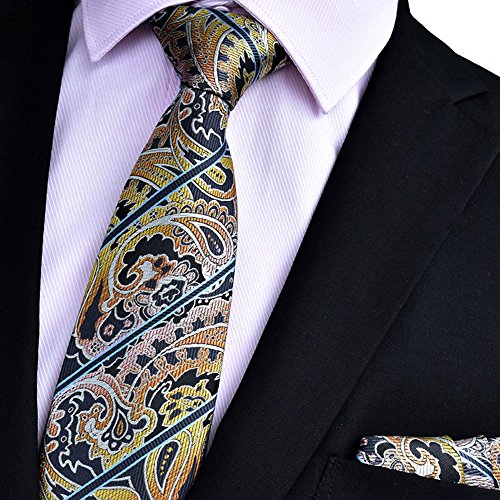 | (FOREAST)/Accessories/Ties/DIRECT FROM USA/FOREAST 2 PCS Men Ties and Handkerchief Set Long Silk Neckties with Pocket Squares |