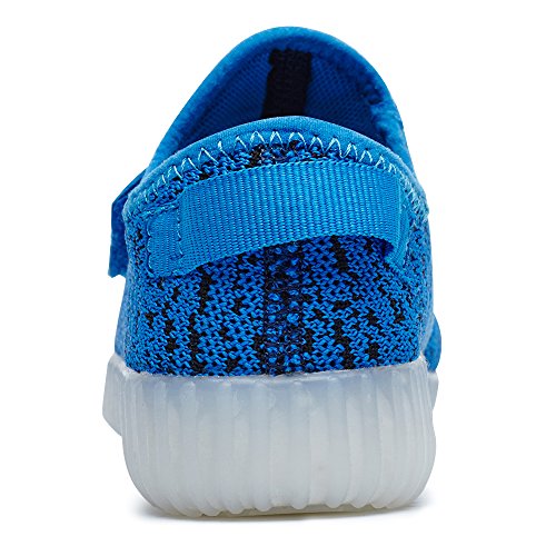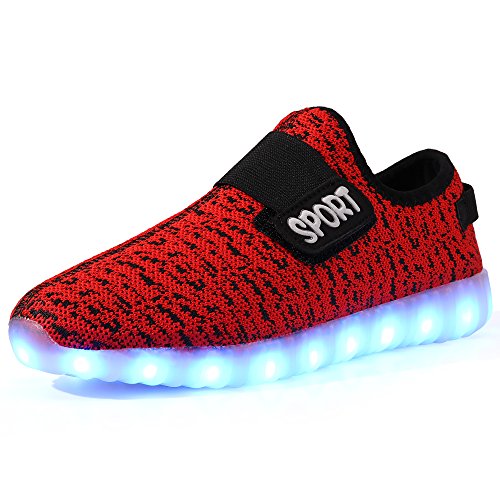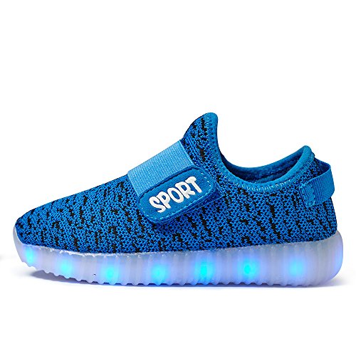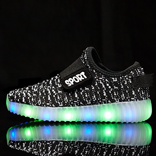 -. Feature : Velcro closure,7 Colorful LED non-slip rubber sole,breathable and lightweight flying weaving fabric shoes upper. / Shoes color:Blue,Pink,Black,Red,Orange,Yellow,Green / Switch Instruction: Hidden switch button beside the charging port. Press it to switch on. With each press,it changes to another light mode. Press the switch for 8 times to all colors lights flashing , keep pressing for 3 seconds to turn off the power. / Charge Instruction: Upgraded 400 mA large capacity battery,you can use cellphone charger or power bank to charge the attached USB charging cable,easy to find the charging port inside the shoes.Please don't wear the shoes when charging.Battery usage time:9-12 hours,Get the battery fully charge:2-3 hours for each. / These Shoes are ideal for Festival/Birthday Gift/Evening Riding etc. It is the best gifts for your children.