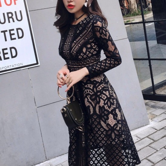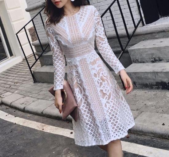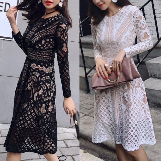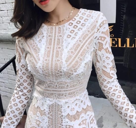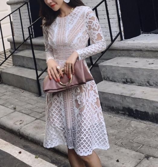 エレガントミディアレンジオールレースワンピース。