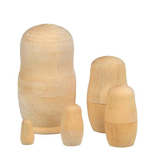 -. Title : 4.65 ‘’ DIY Craft Set of 5pcs Unpainted Wooden Blank Russian Nesting Dolls