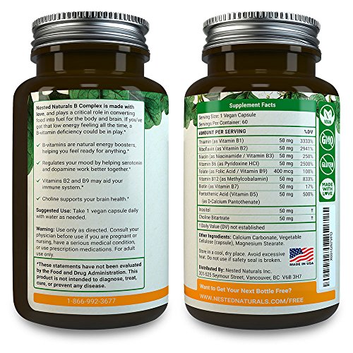 Studio : Nested Naturals Publisher : Nested Naturals Binding : Health and Beauty Product Description NESTED NATURALS VITAMIN-B COMPLEX: All 8 Standard B-Vitamins Choline Inositol Most Complete B-Vitamin Complex B-vitamins work best when they are in balance, so we've included every one of them, plus two awesome extras: choline and inositol. Vitamin B3 Minus the Nasty Niacin Side Effects We use the niacinamide form of B3 because it doesn't cause flushing or anxiety, which are common side effects of the niacin form of B3. Most Bioavailable Form of Vitamin B12 The methylcobalamin form of B12 is much easier for the body to use than the cheaper cyanocobalamin form, so we spared no expense. Only the best for our customers! Non-GMO, Vegan, and Allergy-Friendly We are relentless about sourcing the best, most natural, most ethically produced ingredients available. Our Vitamin-B Complex is 100% non-GMO, 100% vegan, and dairy-free, soy-free, egg-free, nut-free, corn-free, and certified gluten-free too, with no barley, yeast, sugar or preservatives. Fully Tested with Transparency in Labeling We believe that you deserve to know everything that goes into your body. That's why we third-party test all our products and include every single ingredient on our label... not just the active ingredients. We are transparent about the "other" ingredients that are necessary to create a working supplement that other labels often don't bother to mention. Love It, Or Your Money Back We've crafted something that we're really proud of. Each batch is made with love and we never cut corners, ever. If you don't love it, we'll be a little sad. But ultimately, friend, it's more important to us that you are happy. If you aren't satisfied, we'll refund your money. There's no hitch. Just email or call us. Looking for a complete, comprehensive Vitamin-B Complex? Scroll up click 'Add to Cart' now. 0 |