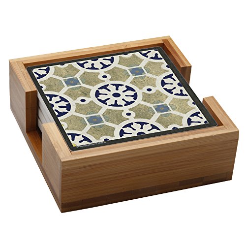 Thirstystone Stone Drink Coaster Set World Indigo Tiles - Wood Holder Included, , Multicolored